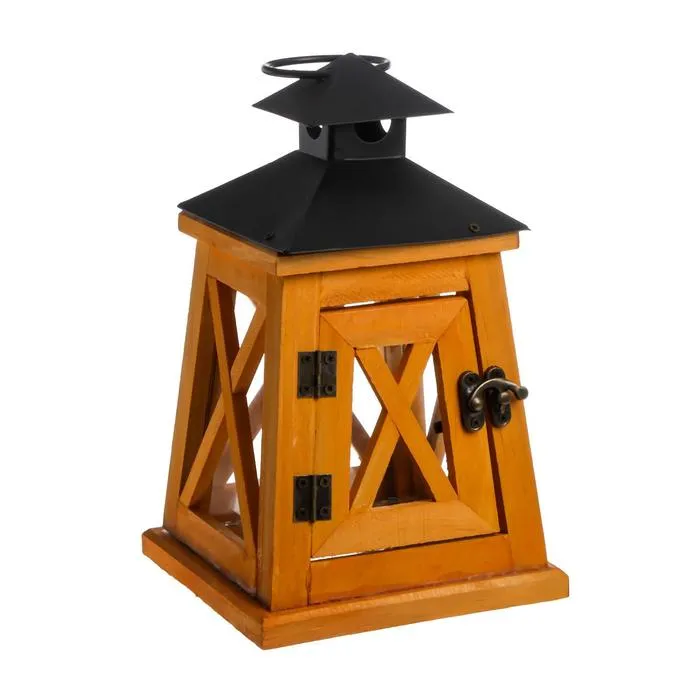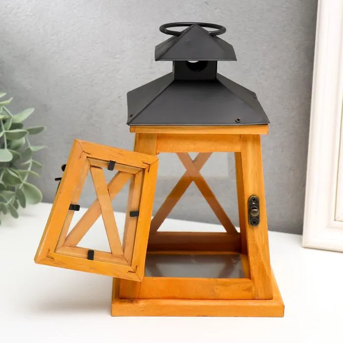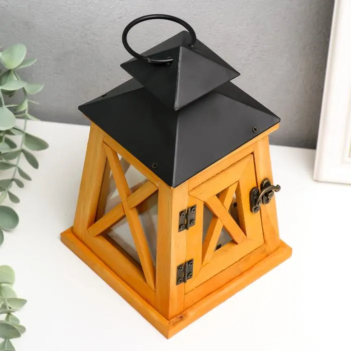 Подсвечник дерево на 1 свечу "Фонарь трапеция" коричневый жёлтый 20,5х12,5х12,5 см — Характеристики