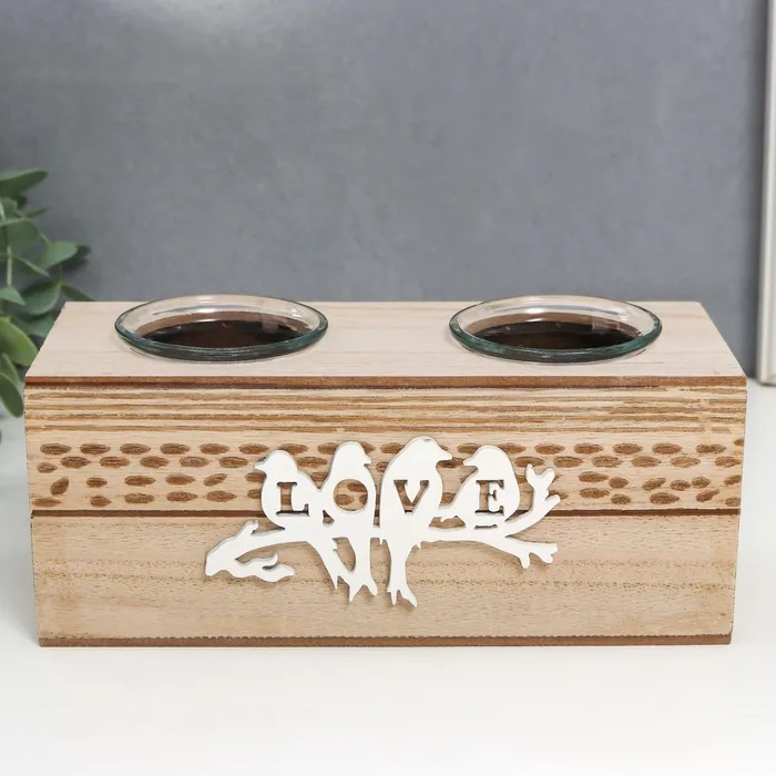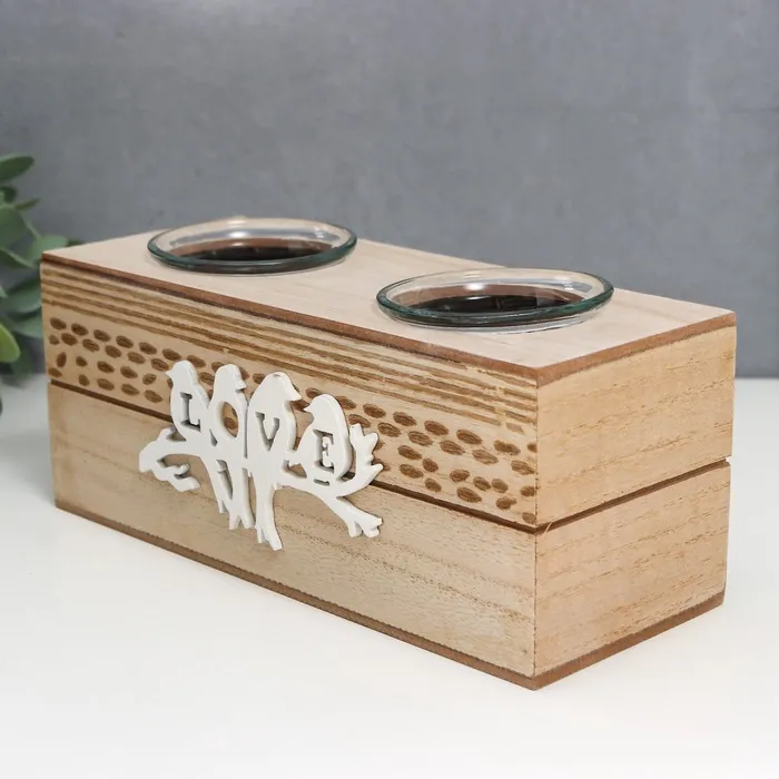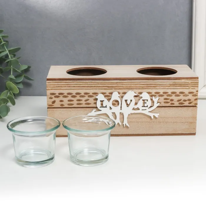 Подсвечник дерево, стекло "Птички на ветке" d- 3,5/4 см 8х20х8 см — Характеристики