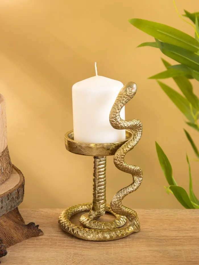 Подсвечник для свечи 8 см «Змея», 9×9×16 см, алюминий, золото