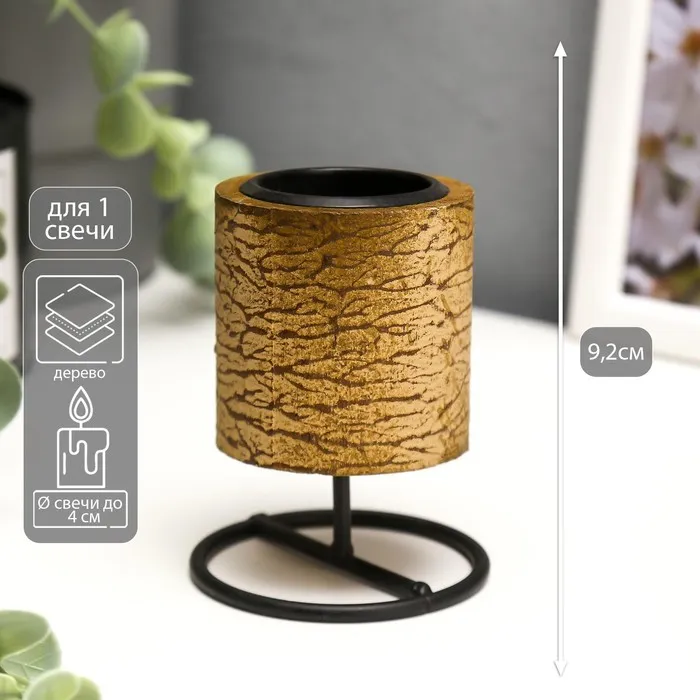 Подсвечник дерево, металл на 1 свечу "Столбик" 8х7х7 см, МИКС