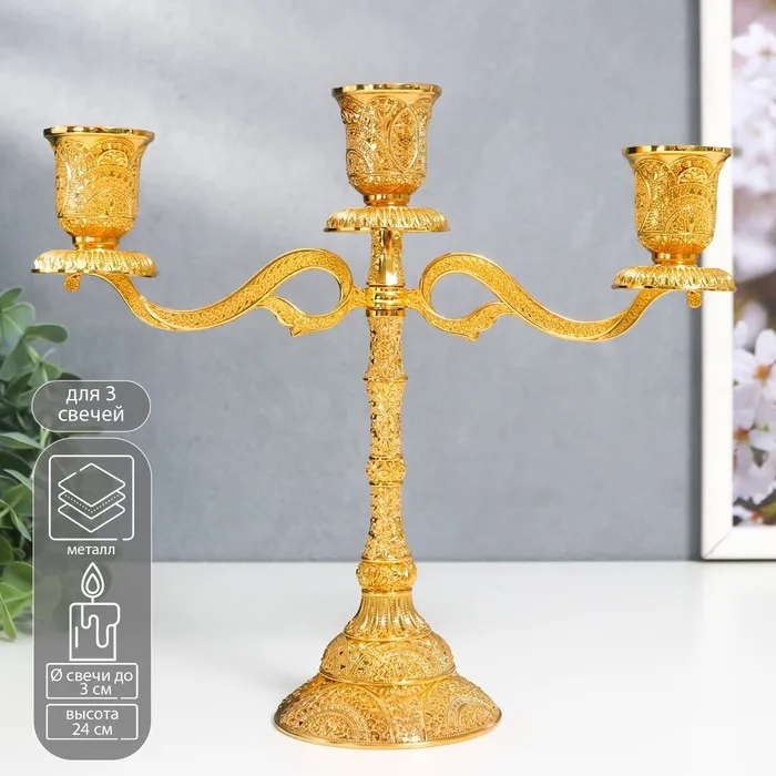 Металлический подсвечник на 3 свечи «Канделябр. Раджа», золото, 22.5×8×24 см