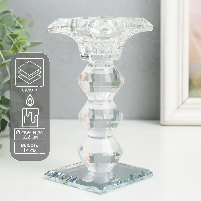 Стеклянный подсвечник на 1 свечу «Бефана с 3 подъемами», прозрачный, d=2.2 см и 3.5 см; 6×6×14 см