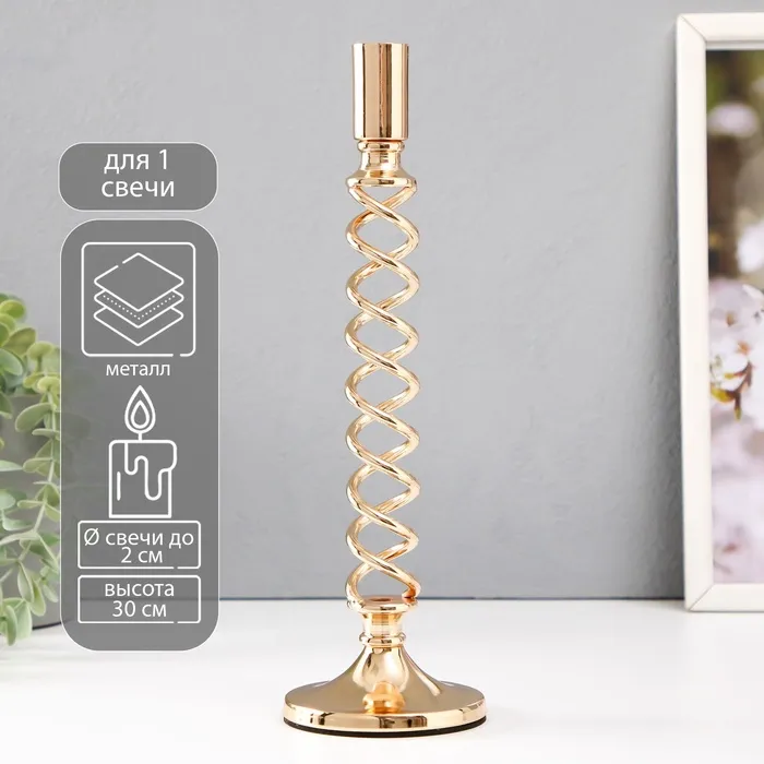 Металлический подсвечник на 1 свечу «Аделин», d=2 см, золото, 9×9×30 см