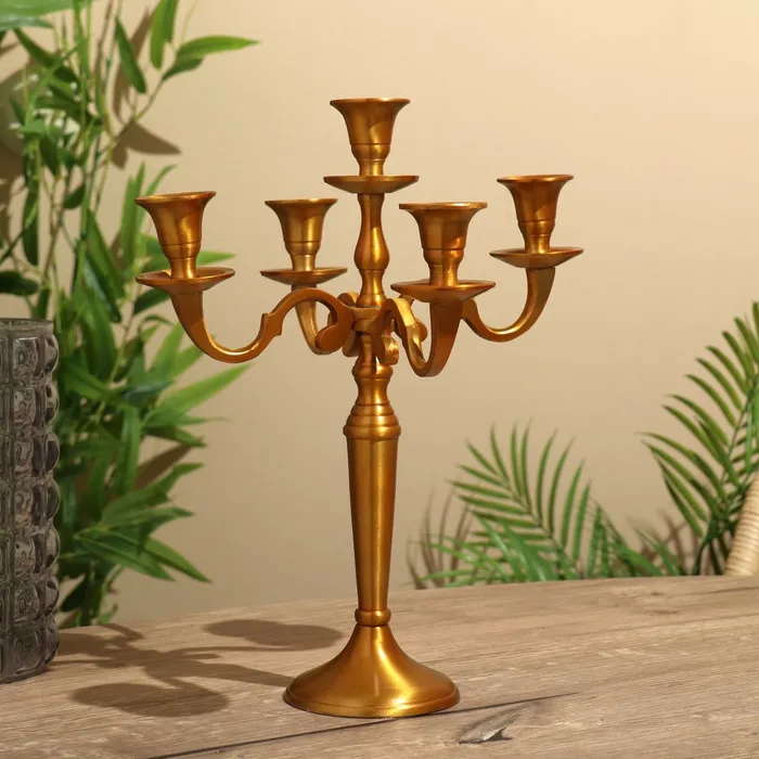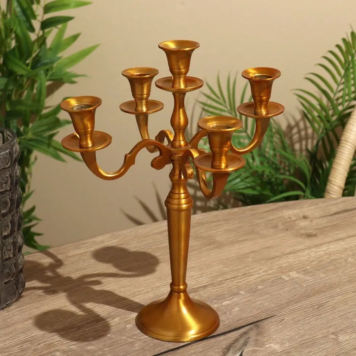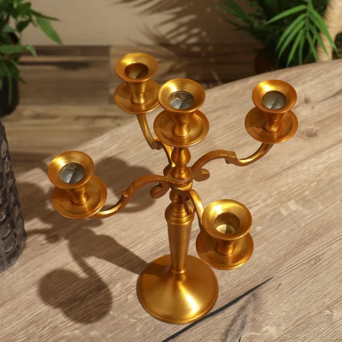 Металлический подсвечник на 5 свечей «Канделябр. Лаконичность», под латунь, 26.5×27.5×10 см