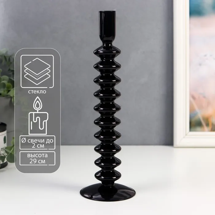 Подсвечник стекло на 1 свечу "Луаре" чёрный 29х8,5х8,5 см