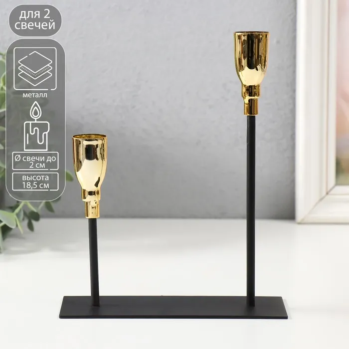 Металлический подсвечник на 2 свечи «Ахиллес», чёрный с золотом, 15.5×6×18.5 см