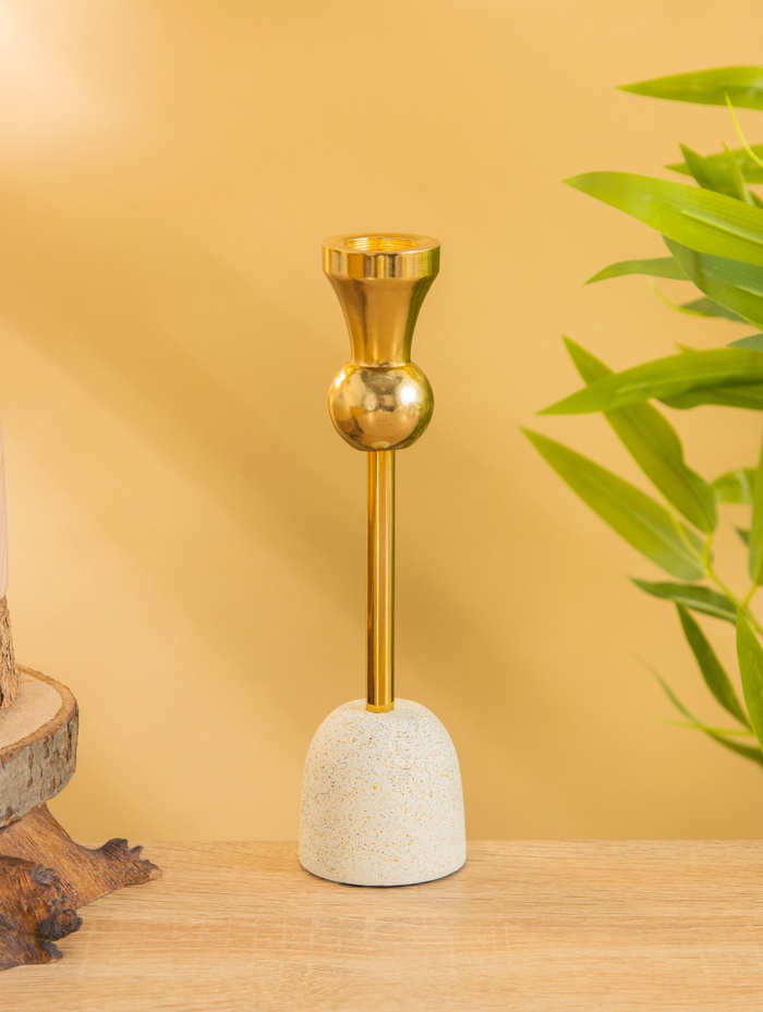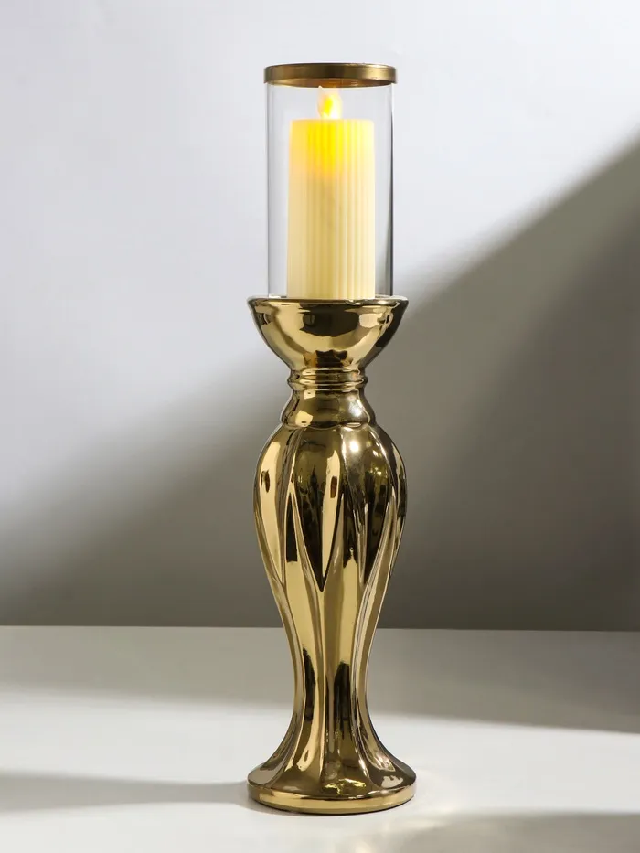 Подсвечник на 1 свечу «Версаль», керамика, стекло, d=7.5 см, золото, 10.5×10.5×44.5 см
