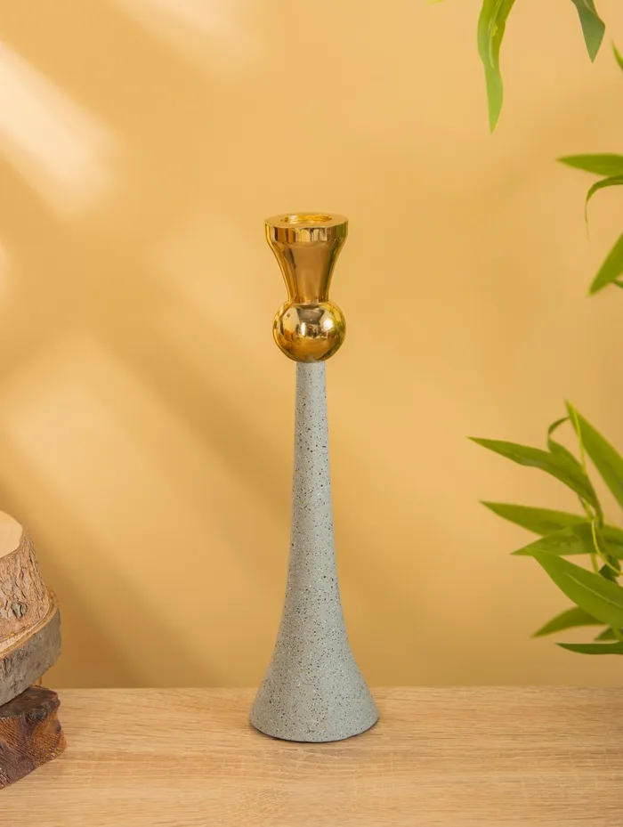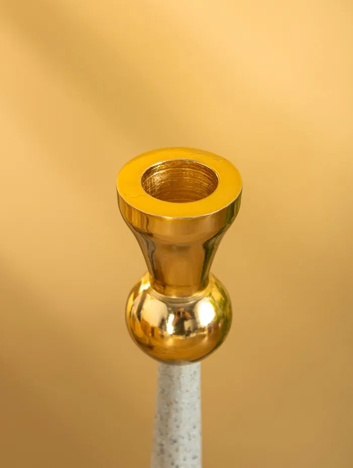 Подсвечник керамика на 1 свечу «Изгиб», d=3.5 см, золото, 6.5×6.5×17.5 см