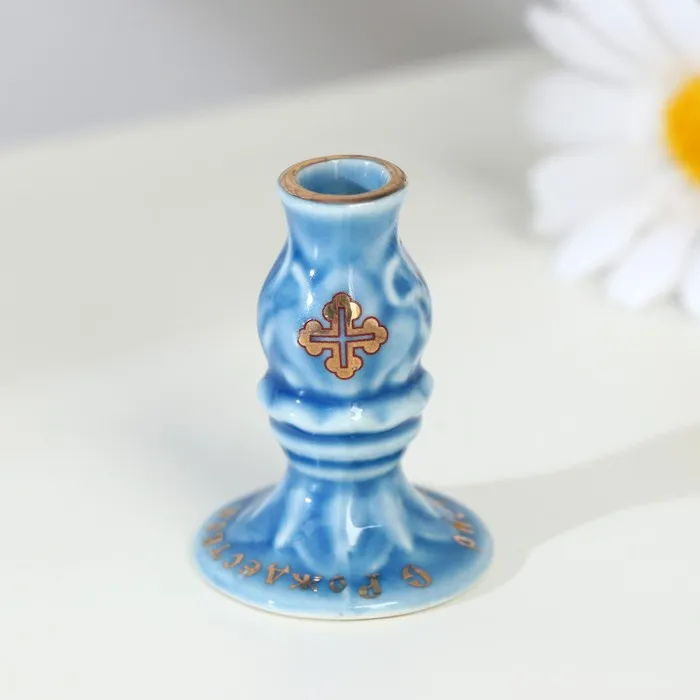 Подсвечник гжель, цветной, керамика, 5×4 см, микс