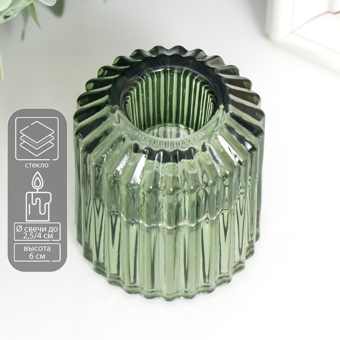 Стеклянный подсвечник на 1 свечу «Долли», d=2.5 см, 4 см, зелёный, 6×5×5 см