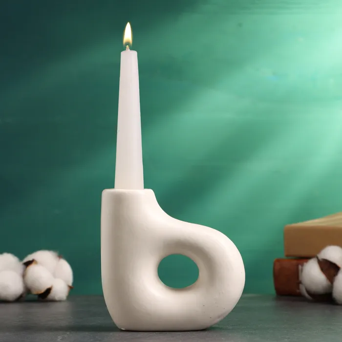 Подсвечник на 1 свечу TAKE IT EASY «Брэй», керамика, белый глянец, 10×4×10 см