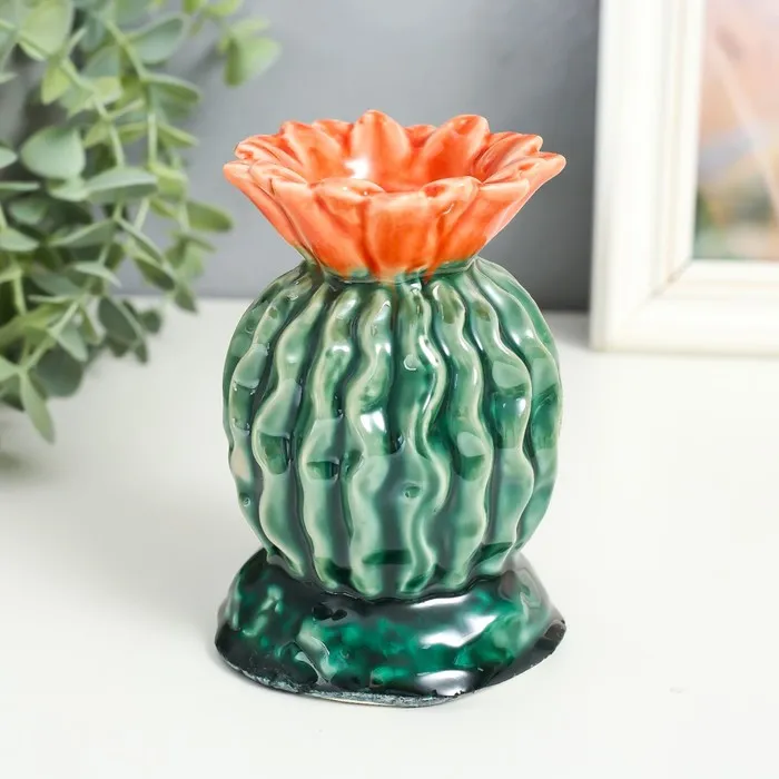 Подсвечник на 1 свечу «Кактус с цветком», керамика, 11.5×8×8 см