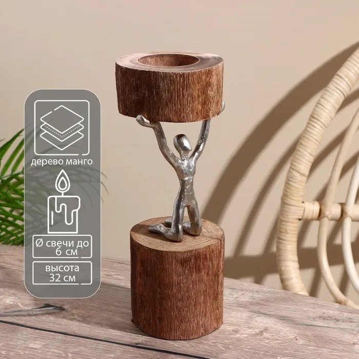 Подсвечник "Воля" алюминий, манговое дерево 10х10х32 см