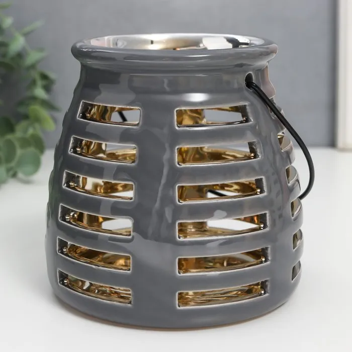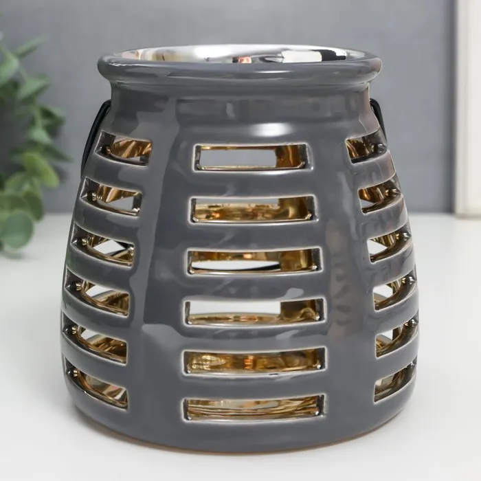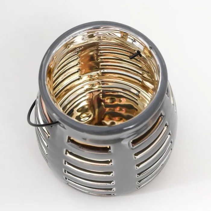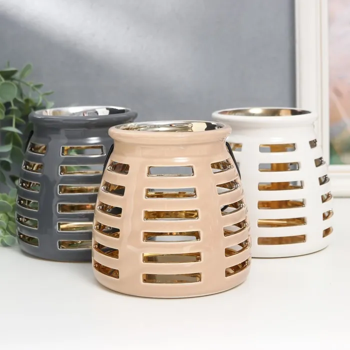 Подсвечник-фонарь керамика на 1 свечу «Полосы», внутри золото, 11.5×11.5×11 см, МИКС — Характеристики