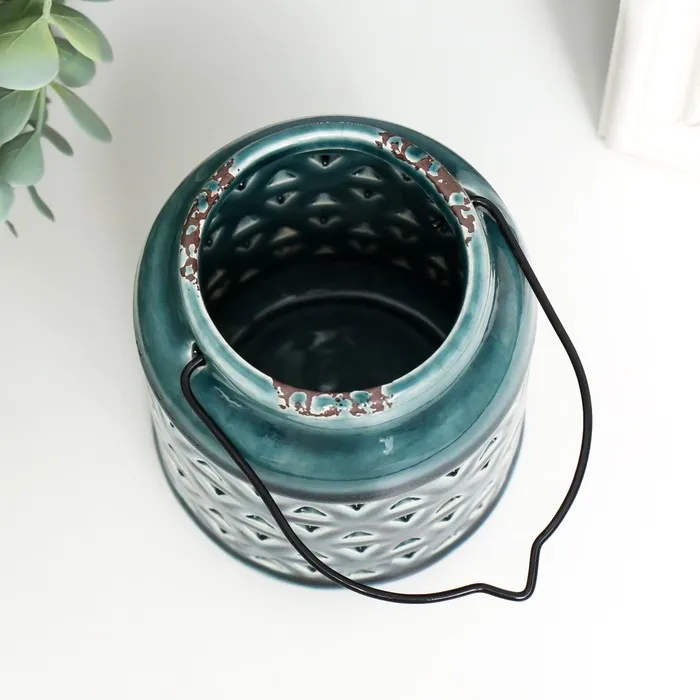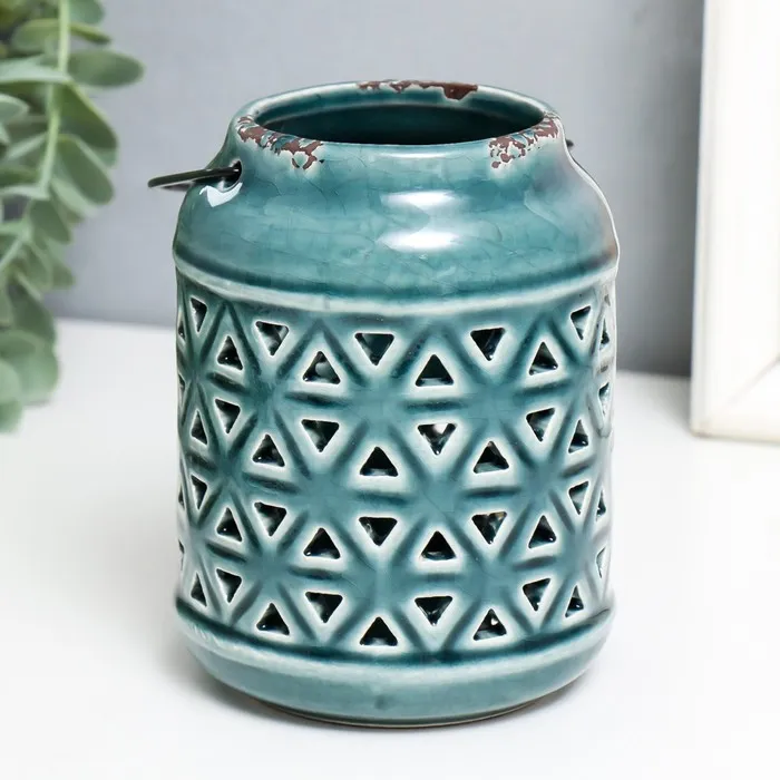 Подсвечник-фонарь керамика на 1 свечу «Ромбы», зелёный, 9×9×12 см — Характеристики