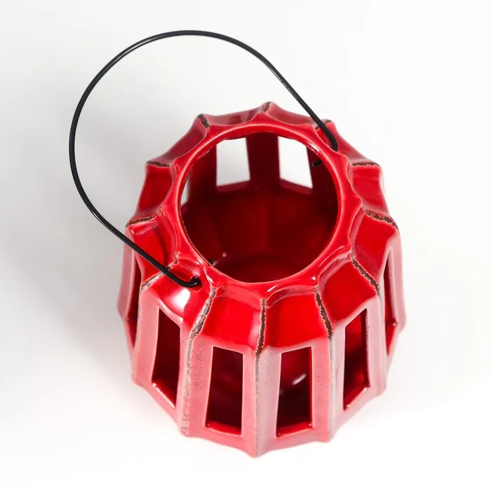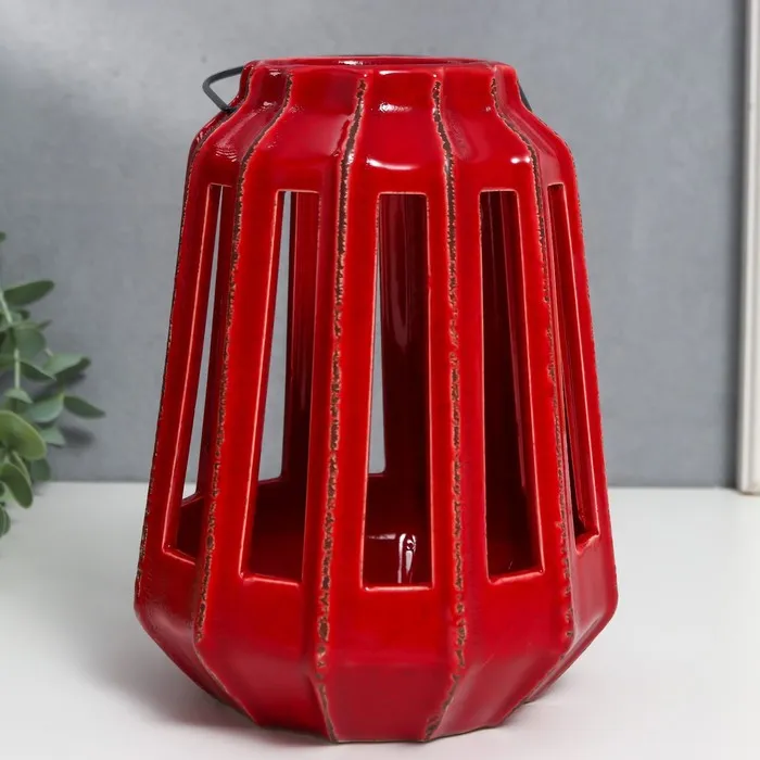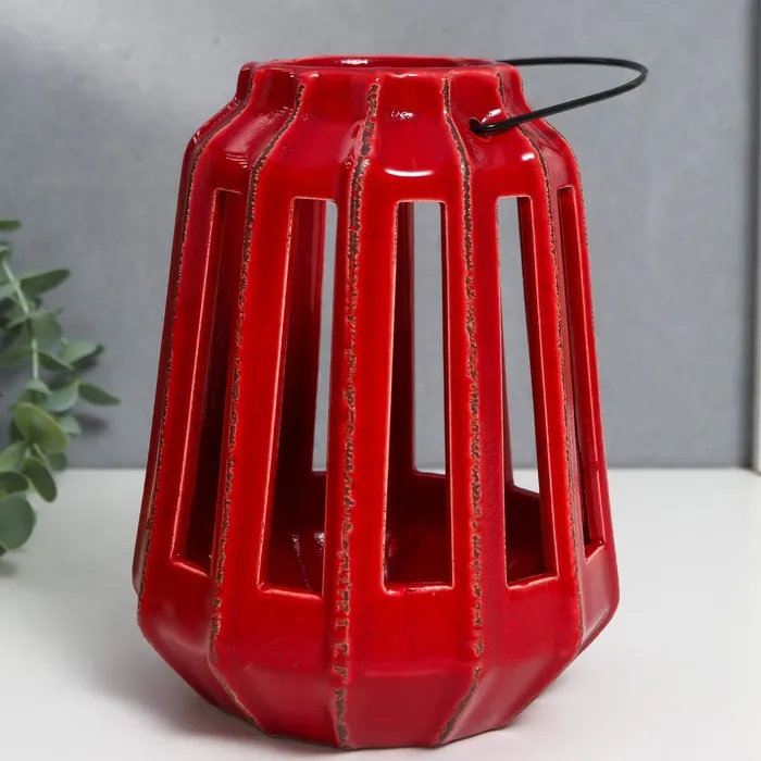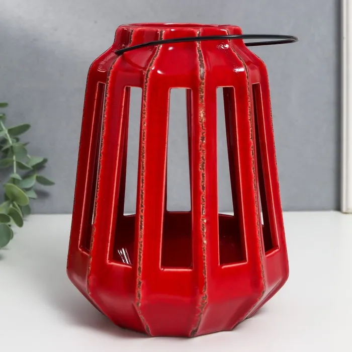 Подсвечник-фонарь керамика на 1 свечу «С вырезами», т. красный, 19×14×14 см — Характеристики