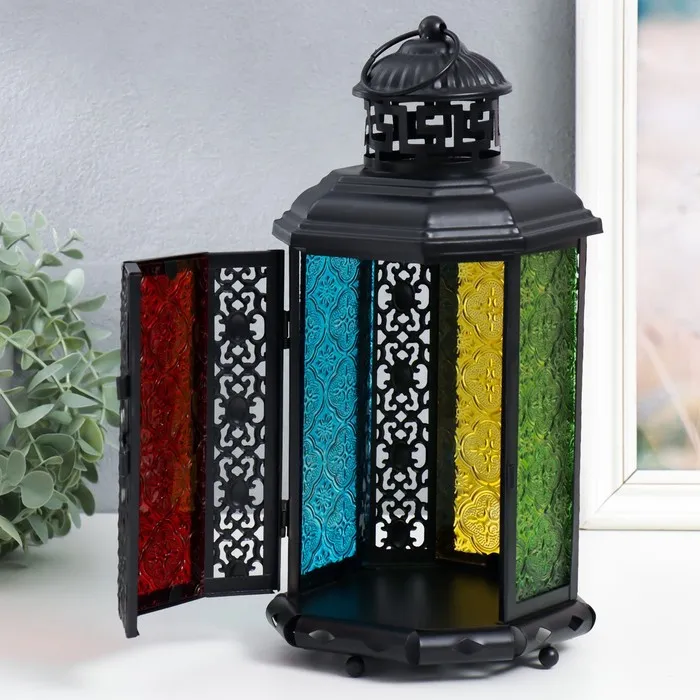 Подсвечник-фонарь на 1 свечу «Арабская ночь», цветные стёкла, 28×15×15 см — Характеристики