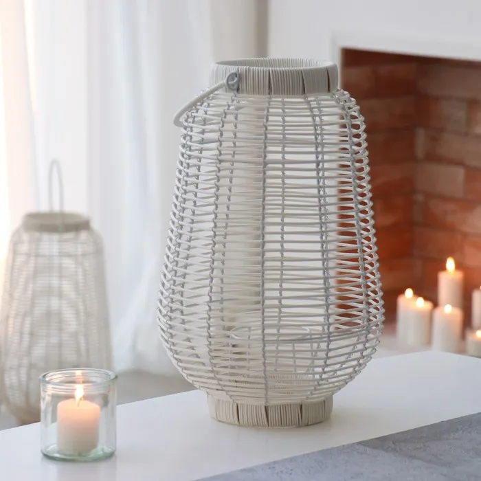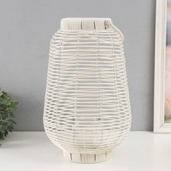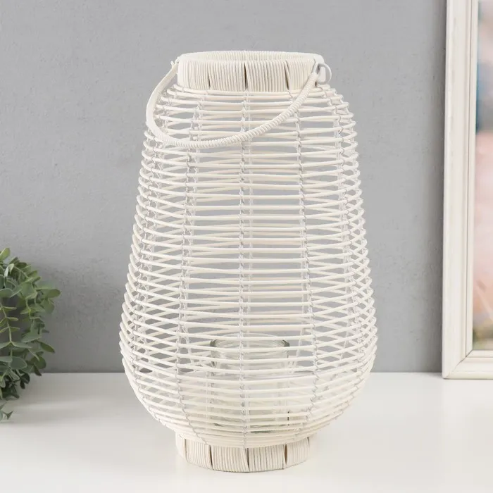Подсвечник-фонарь на 1 свечу «Плетёнка», металл, PVC, белый, 39×25×25 см — Характеристики