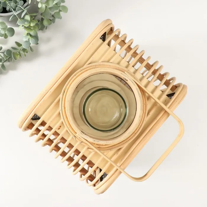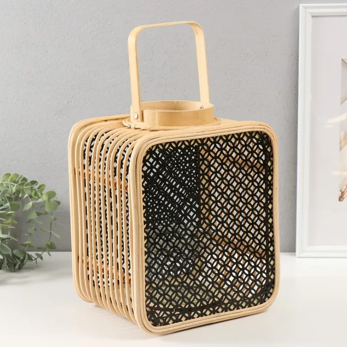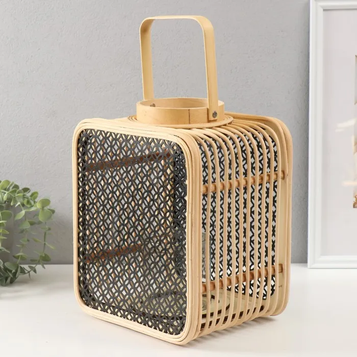 Подсвечник-фонарь на 1 свечу «Сеточка. Прямоугольный», ротанг, металл, 31.5×24.5×19 см — Характеристики