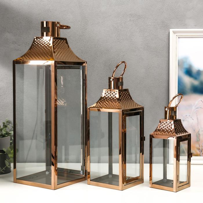 Подсвечник-фонарь на 1 свечу «Точки», медь, набор 3 шт., 55×18×18 см; 37.5×14.5×14.5 см; 26×10×10 см — Характеристики