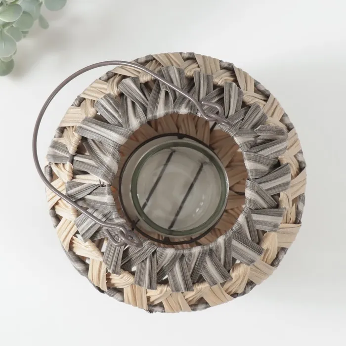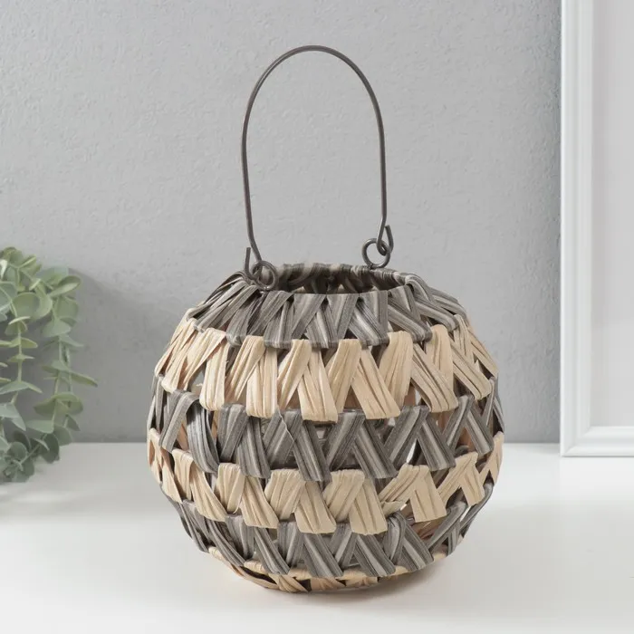 Подсвечник-фонарь на 1 свечу «Зигзаг полосками», пластик, серо-бежевый, 10×21×19 см — Характеристики