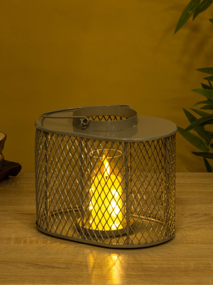 Ставите свечу внутрь — пламя горит ровно, не дрожит от ветра. Свет проходит через стекло, мягко ложится на стены, создавая ощущение глубины. Серый металл не кричит — он фон, который усиливает атмосферу, а не отвлекает. Можно поставить на стол, полку или даже на подоконник — фонарь не требует особого места, но добавляет вес. Используйте его как элемент декора или как источник света — он одинаково хорош в обоих ролях.