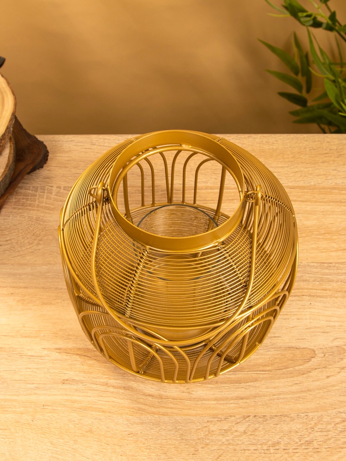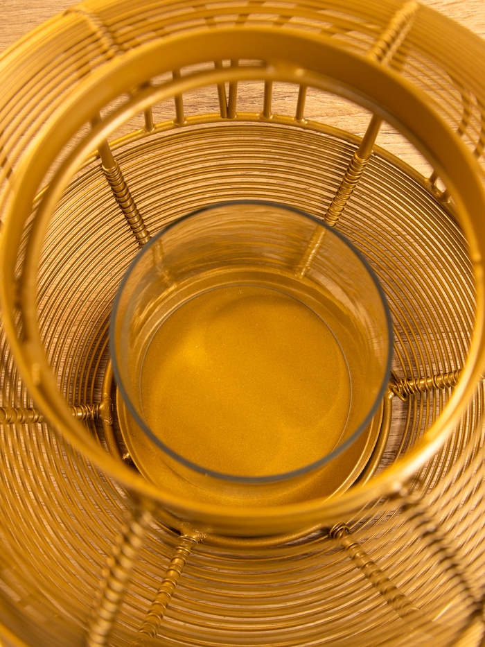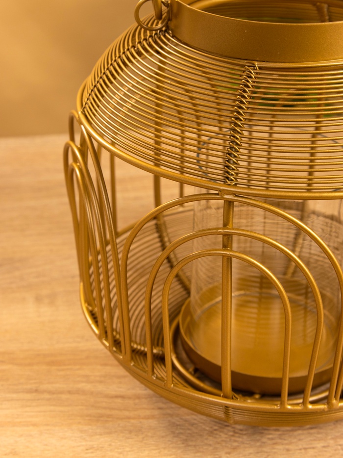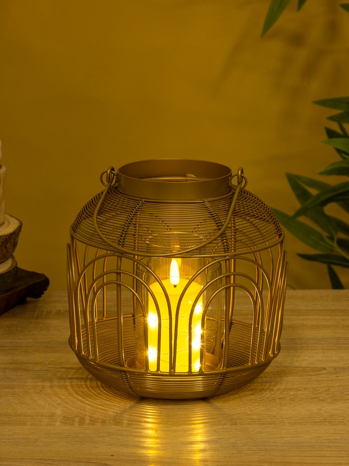 Ставите свечу внутрь — пламя горит ровно, не дрожит от ветра. Свет проходит через стекло, мягко ложится на стены, создавая ощущение уюта. Золотистый металл не кричит — он работает на фоне, усиливая атмосферу, а не отвлекая. Можно поставить на стол, полку или даже на подоконник — фонарь не требует особого места, но добавляет глубину. Используйте его как элемент декора или как источник света — он одинаково хорош в обоих ролях.