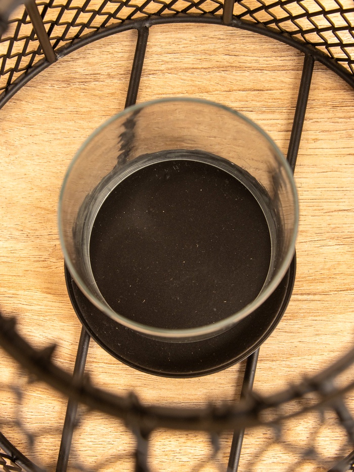 Чёрный фонарь-подсвечник со стеклянной колбой — не просто держатель для свечи, а элемент пространства, который работает на контраст и свет. Подойдёт для лофта, минимализма или индустриального стиля. Матовый чёрный металл не бросается в глаза, а подчёркивает пламя. Стекло защищает огонь, не искажая его.