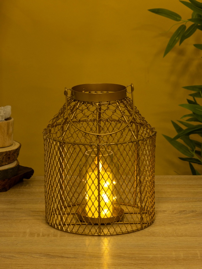 Ставите свечу внутрь — пламя горит ровно, не дрожит от ветра. Свет проходит через стекло, мягко ложится на стены, создавая ощущение уюта. Золотистый металл не кричит — он фон, который усиливает атмосферу, а не отвлекает. Можно поставить на стол, полку или даже на подоконник — фонарь не требует особого места, но добавляет вес. Используйте его как элемент декора или как источник света — он одинаково хорош в обоих ролях.