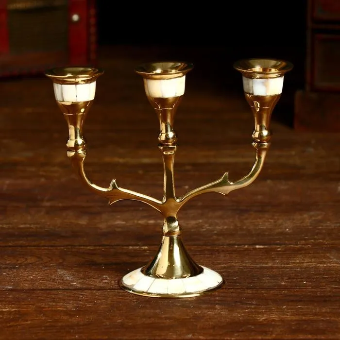 Подсвечник "Паджеро" на 3 свечи, латунь, перламутр 13,5х6,5х15,5 см