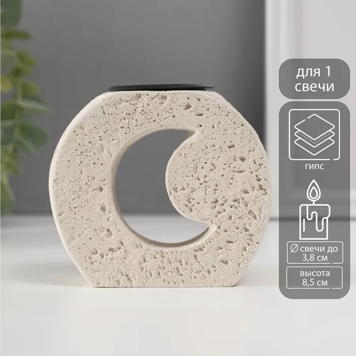 Подсвечник на 1 свечу «Месяц в камне», гипс, металл, d=3.8 см, 5×9.6×8.5 см