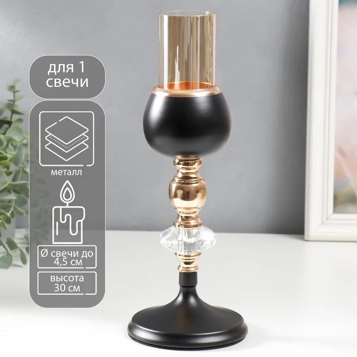 Подсвечник металл на 1 свечу «Кристалл и шар», золото, чёрный, 30×11×11 см
