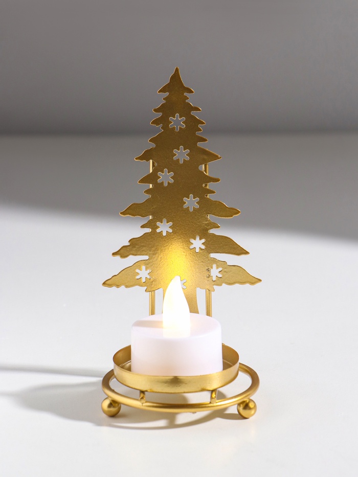 Подсвечник металл на 1 свечу "Ёлочка со звёздами" золото d=5 см 6,5х6,5х13,5 см