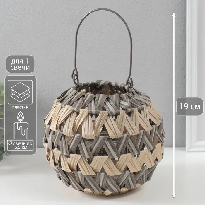 Подсвечник-фонарь на 1 свечу «Зигзаг полосками», пластик, серо-бежевый, 10×21×19 см