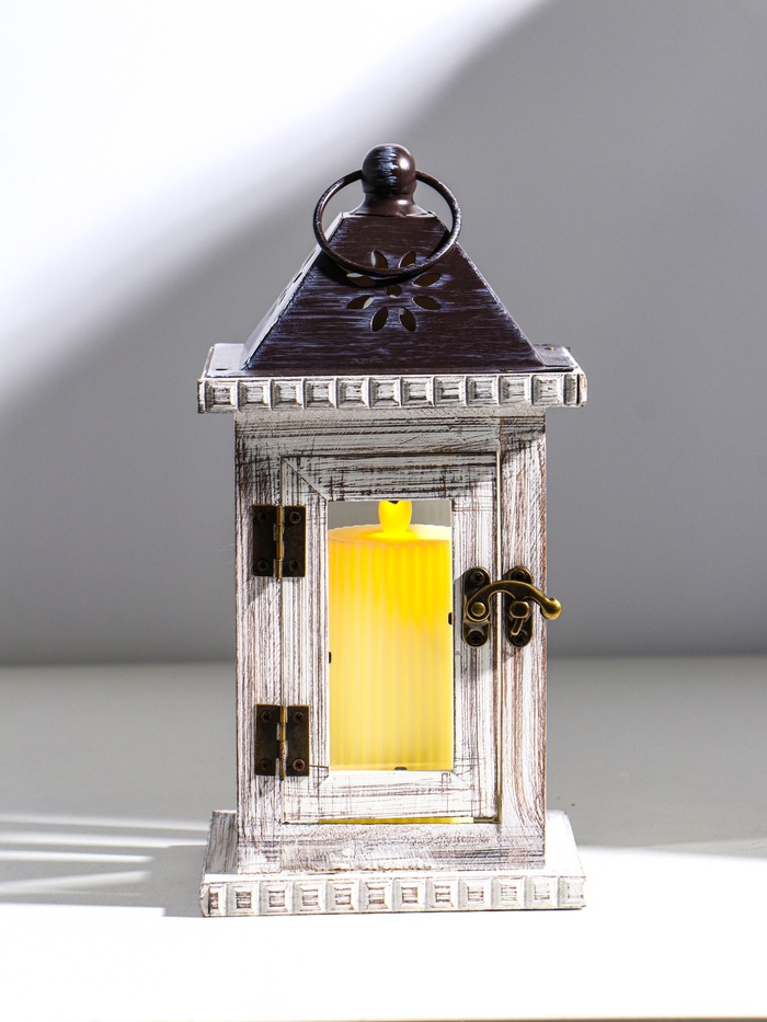 Деревянный подсвечник-фонарь на 1 свечу «Состаренный», белый, 12.5×12.5×25 см