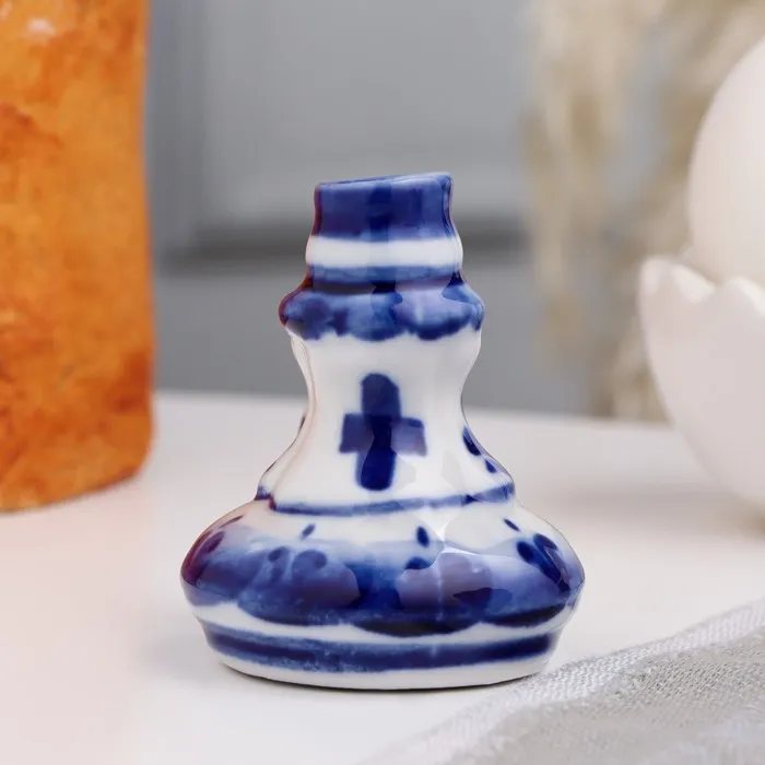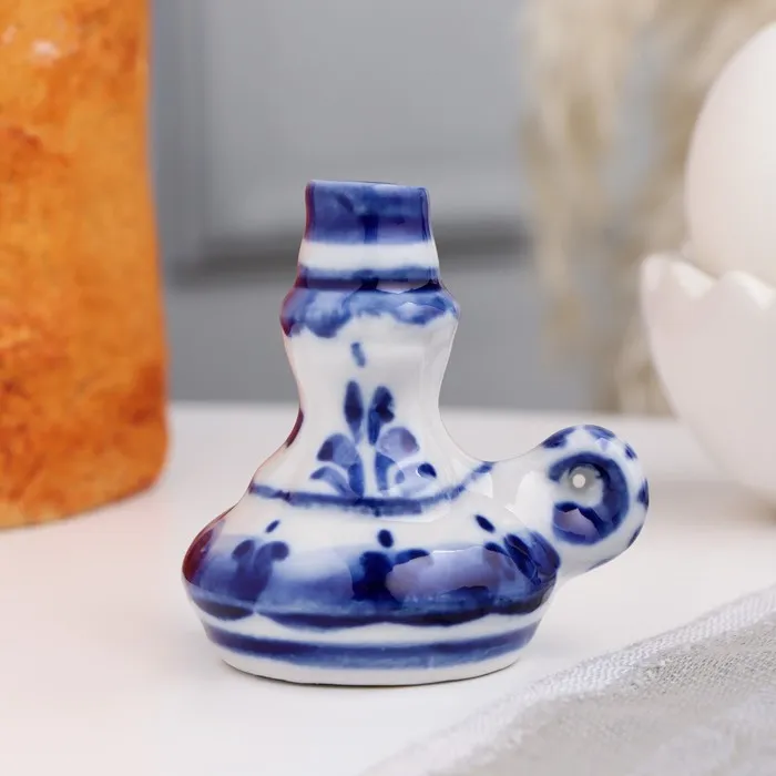 Подсвечник гжель, широкий с ручкой, бело-синий, керамика, 6 см, — Характеристики
