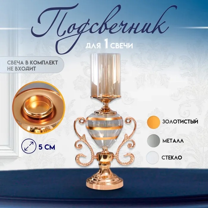 Подсвечник на 1 свечу «Изящный кубок», металл, стекло, золото, 55×14×23 см