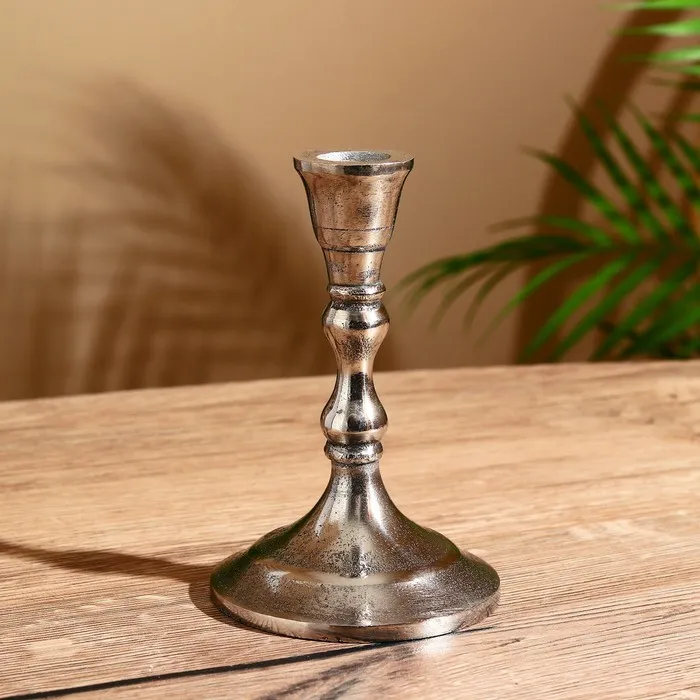 Подсвечник "Гадальный Н" металл на 1 свечу, 7,3х3 см, серый