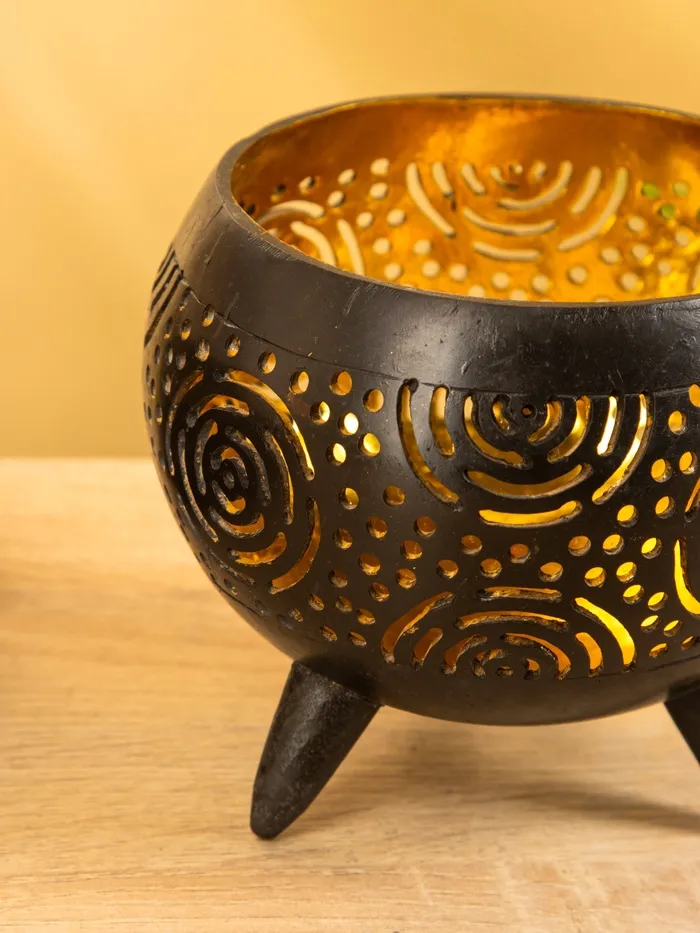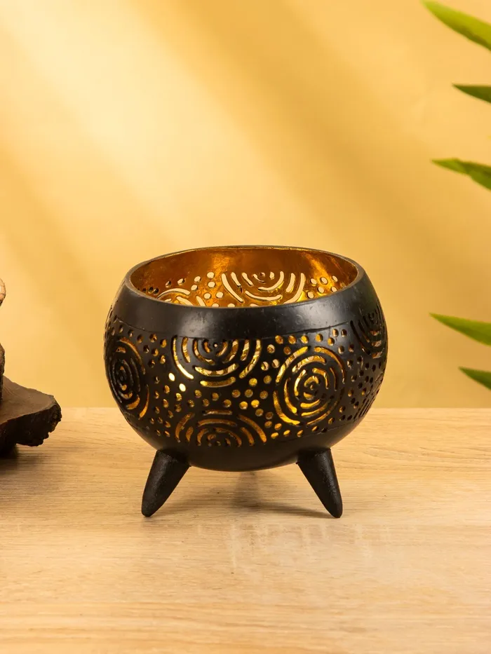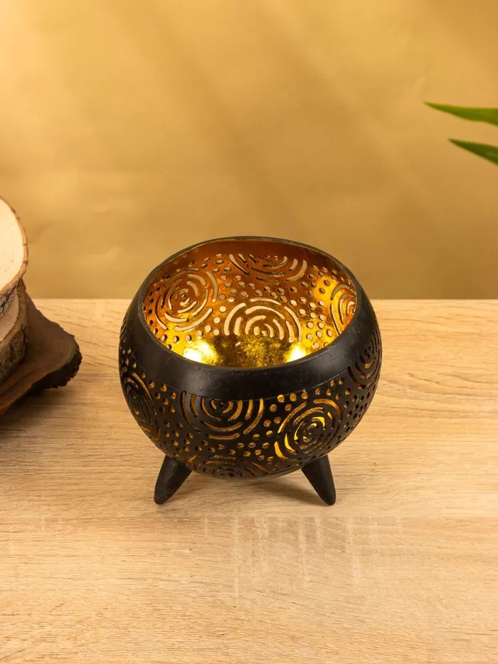 Подсвечник из кокоса, 15×15×13 см, коричнево-золотой