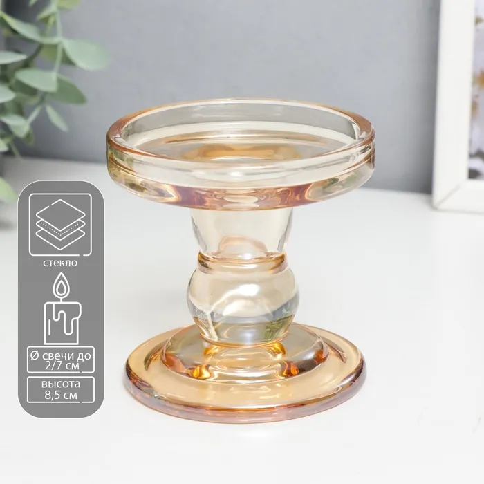 Стеклянный подсвечник на 1 свечу «Подиум», карамель, 8.5×8.5×8.5 см