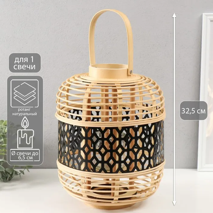 Подсвечник-фонарь на 1 свечу «Соты», ротанг, металл, 32.5×25×25 см