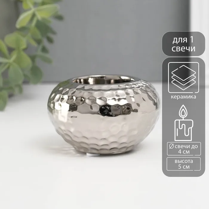 Подсвечник керамика на 1 свечу "Капли дождя на шаре" d=4 см серебро 8х8х5 см