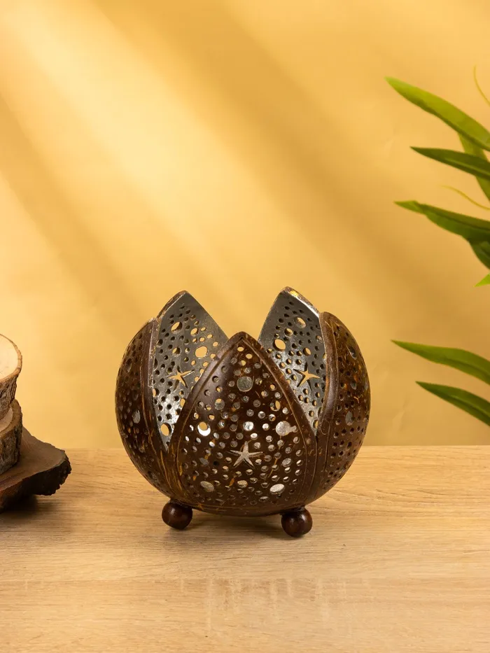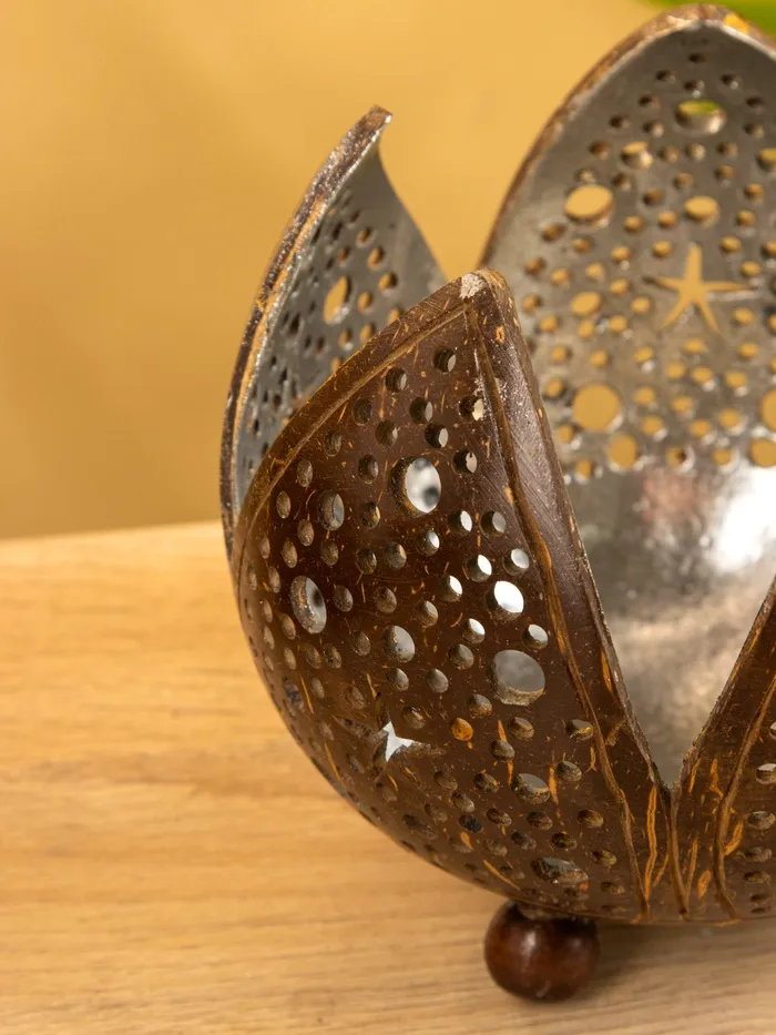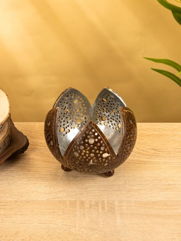 Подсвечник из кокоса «Бутон», 15×15×13 см, коричнево-серебристый — Характеристики
