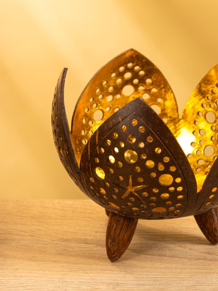 Подсвечник из кокоса «Бутон», 15×15×13 см, коричнево-золотой