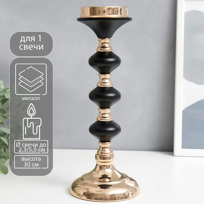 Металлический подсвечник на 1 свечу «Чёрная ночь», золото, 30×11×11 см