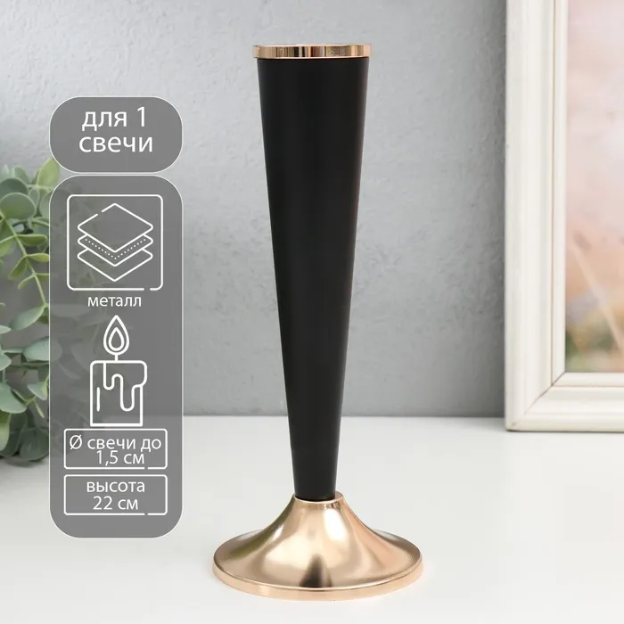 Металлический подсвечник на 1 свечу «Эвиан», d=1.5 см, чёрный с золотом, 9×22 см
