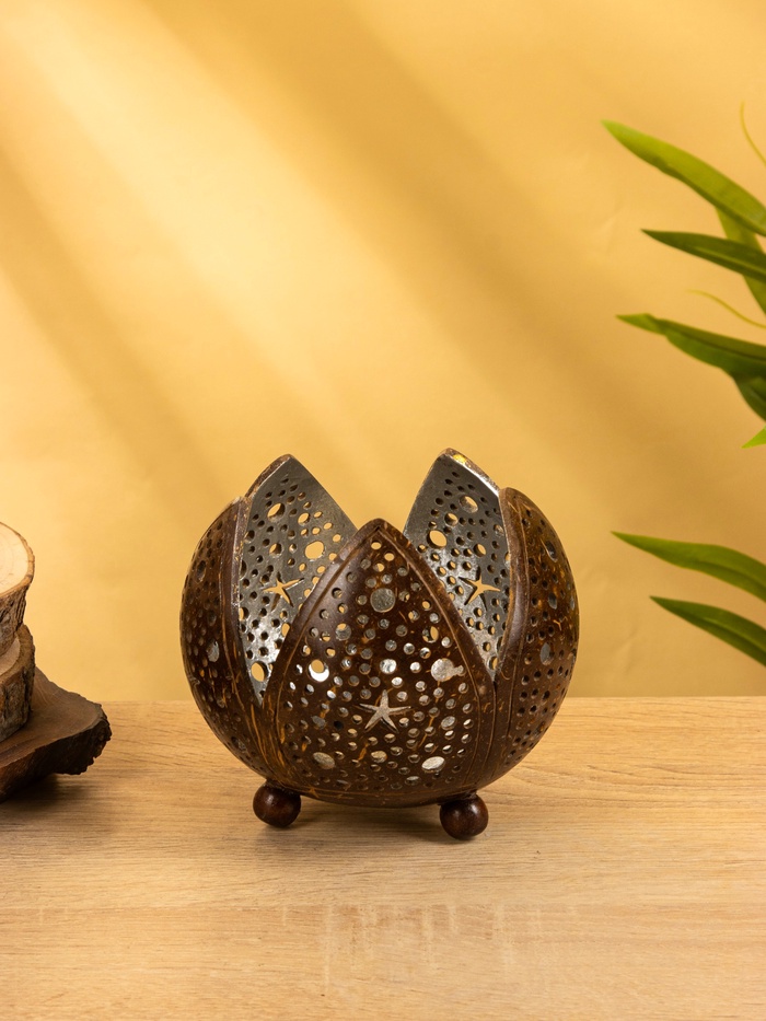 Подсвечник из кокоса «Бутон», 15×15×13 см, коричнево-серебристый