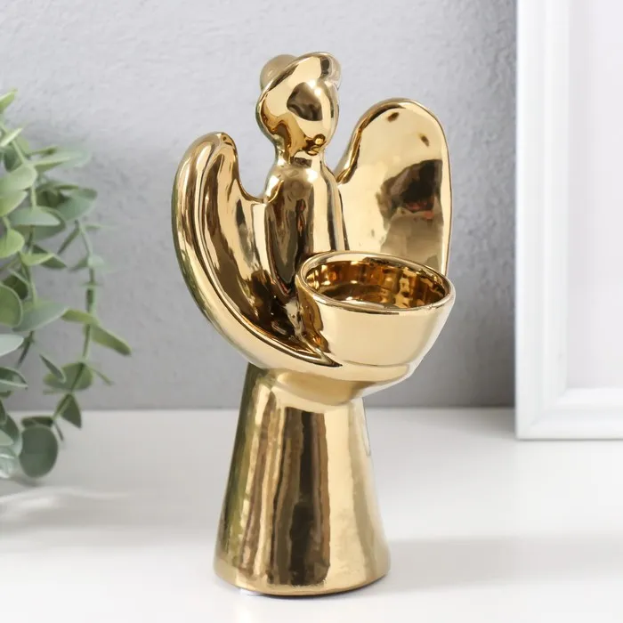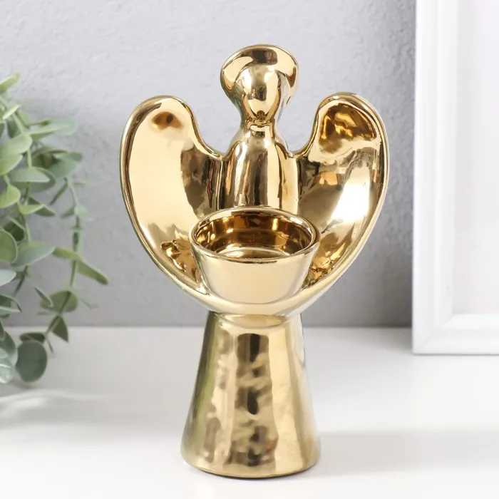 Подсвечник керамика на 1 свечу «Ангел с нимбом», d=4 см, золото, 11.5×10×18.5 см — Характеристики