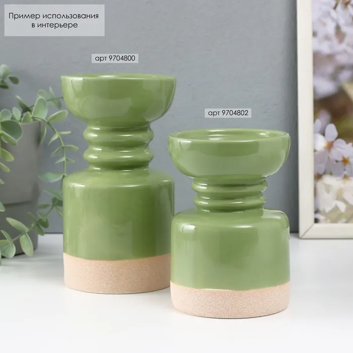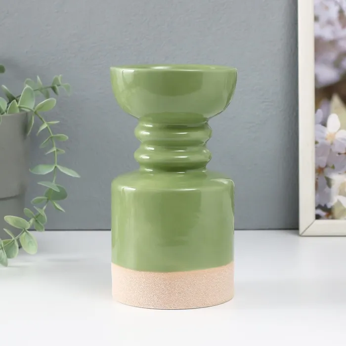 Подсвечник керамика на 1 свечу «Атлант», песочно-зелёный, 9.5×9.5×17.5 см — Характеристики
