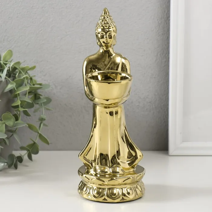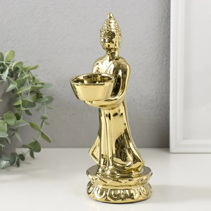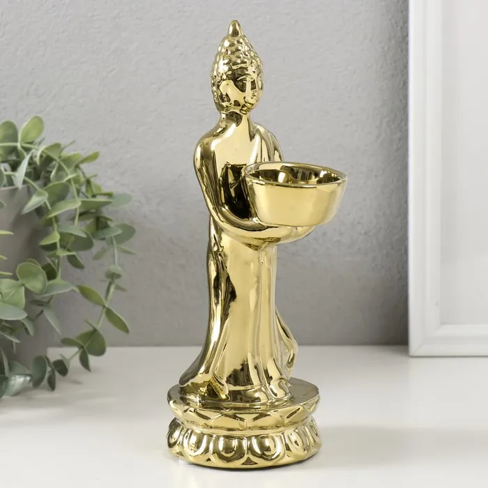 Подсвечник керамика на 1 свечу «Будда», d=4 см, золото, 8×11×22.5 см — Характеристики